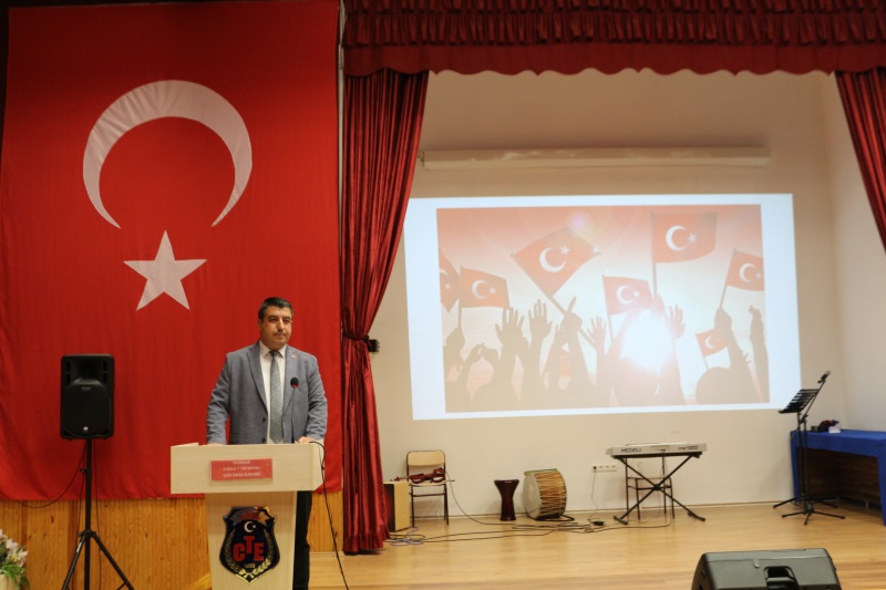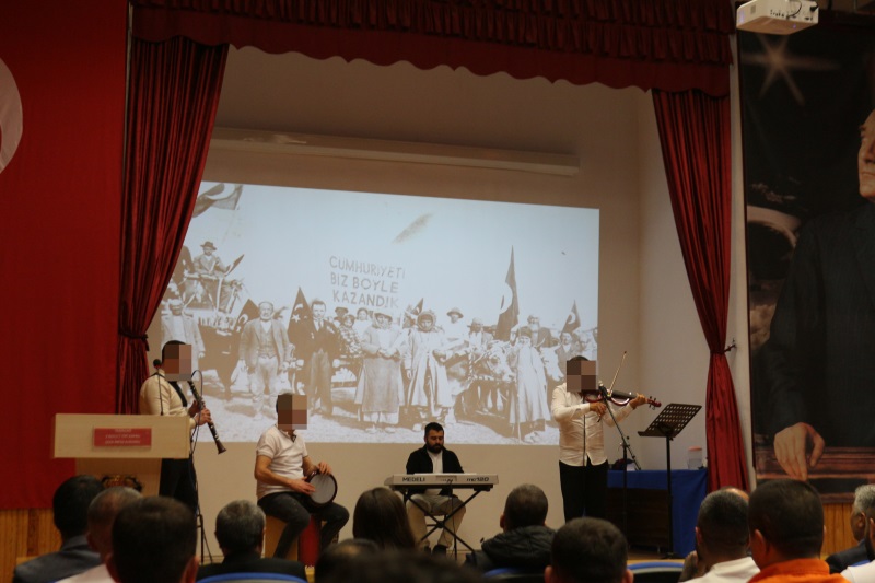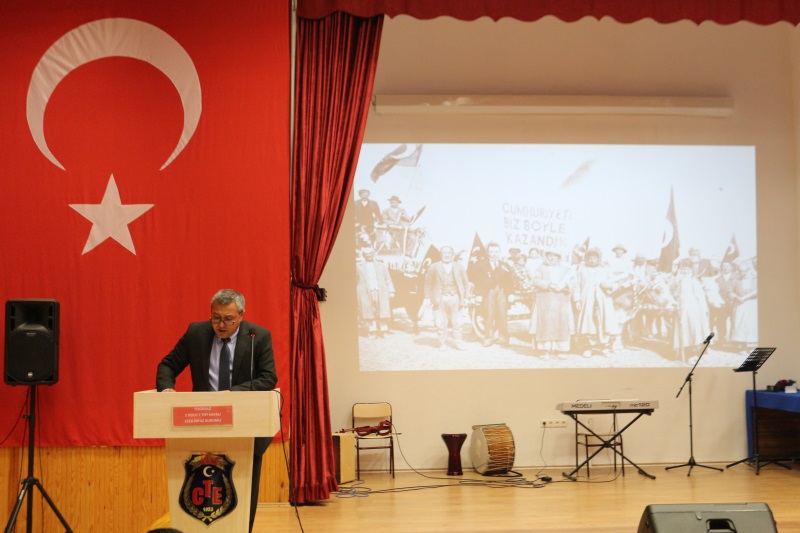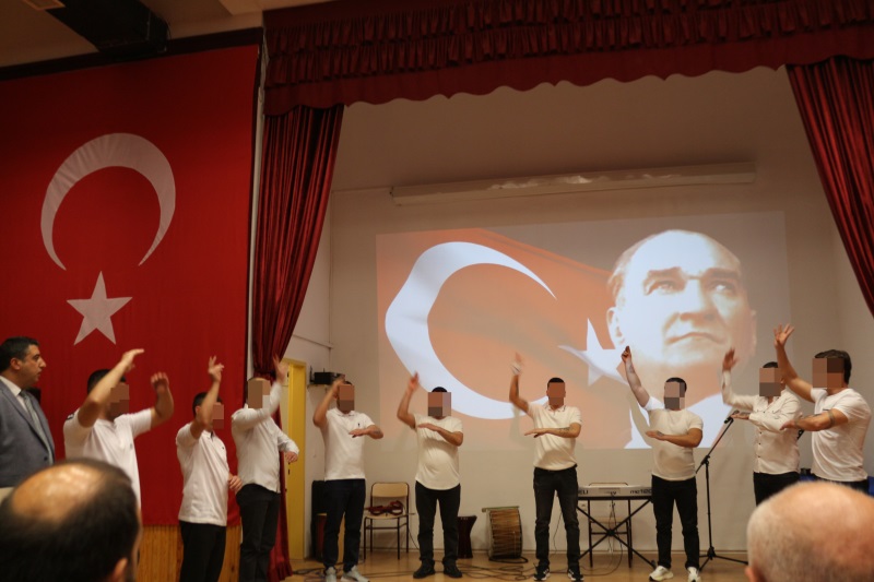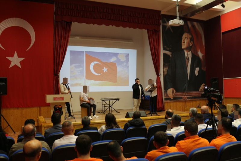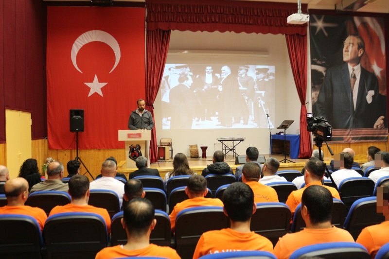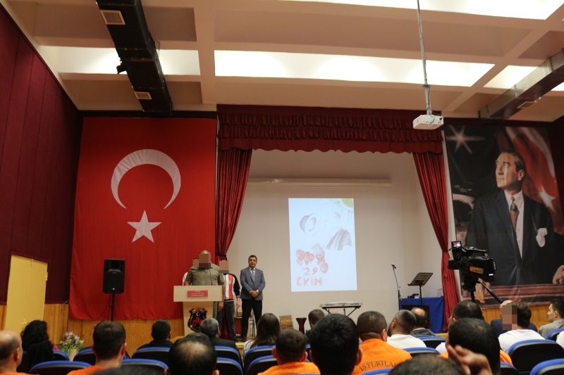 Sunumunu Kurum Öğretmeni Yalçın Aydın'ın yaptığı programımız; Türk İşaret Dili Kursiyerlerimizin eşlik ettiği İstiklal Marşımızın okunmasıyla başladı. TEV Mübeccel Albay Şerafettin Gezgiç Eğitim Merkezi Müdürlüğü Edebiyat Öğretmeni Uğur Sezer, günün anlam ve önemine dair konuşmasıyla programa katkı sağladı. Akabinde Müzik Öğretmenimiz Umut Aslandaş ve kursiyerlerimizin Cumhuriyet Konseriyle devam eden program, konserin hemen ardından Cezaevi Vaizimiz Orhan Yalçınkaya’nın şehit ve gazilerimiz için duasıyla devam etti. Programın son bölümünde ise Kurumumuzda Düzenlemiş olduğumuz resim, şiir ve kompozisyon yarışmalarında birinci olan hükümlü/tutuklular sahnede eserlerini sergilediler. “Cumhuriyet” konulu belgesel gösterimi ile program sona erdi.