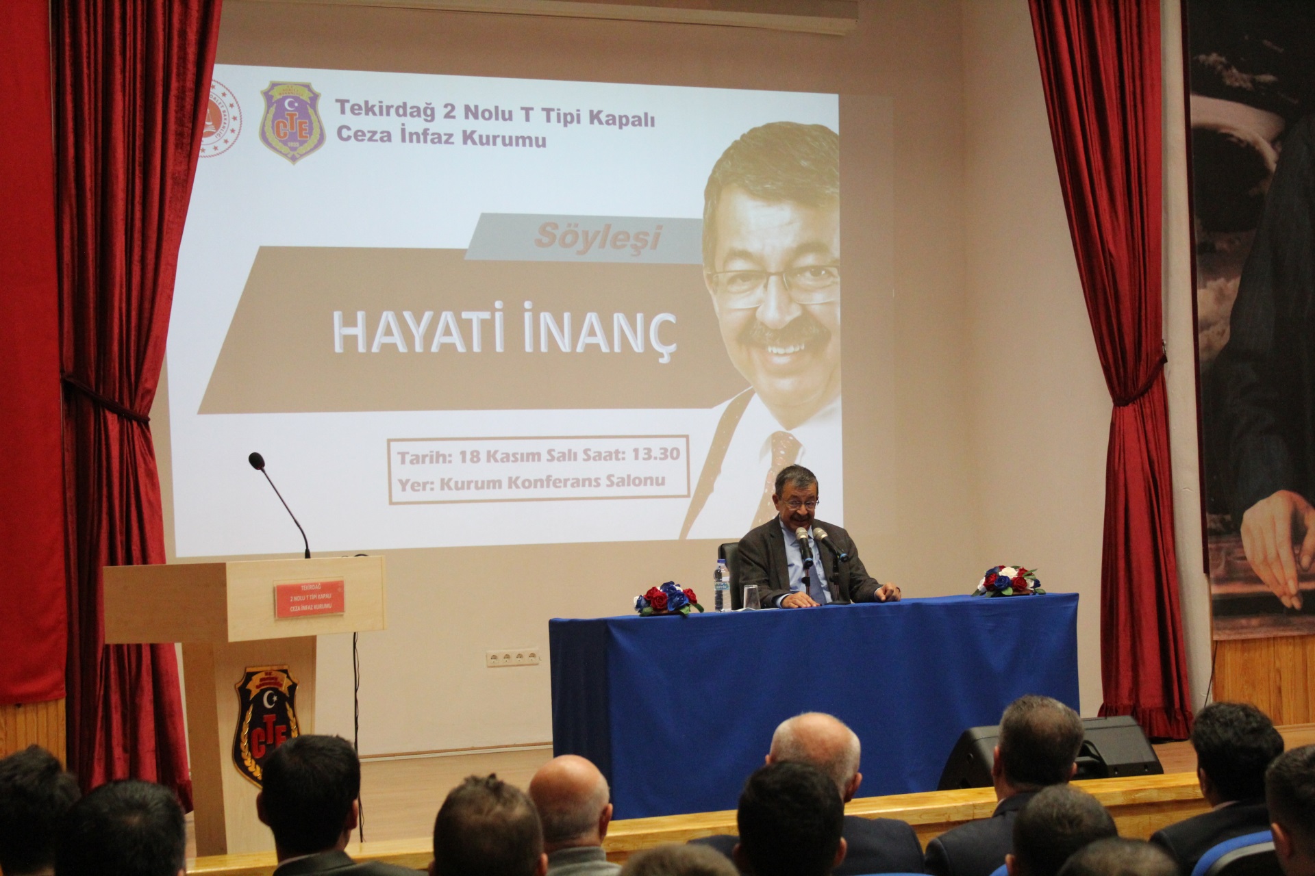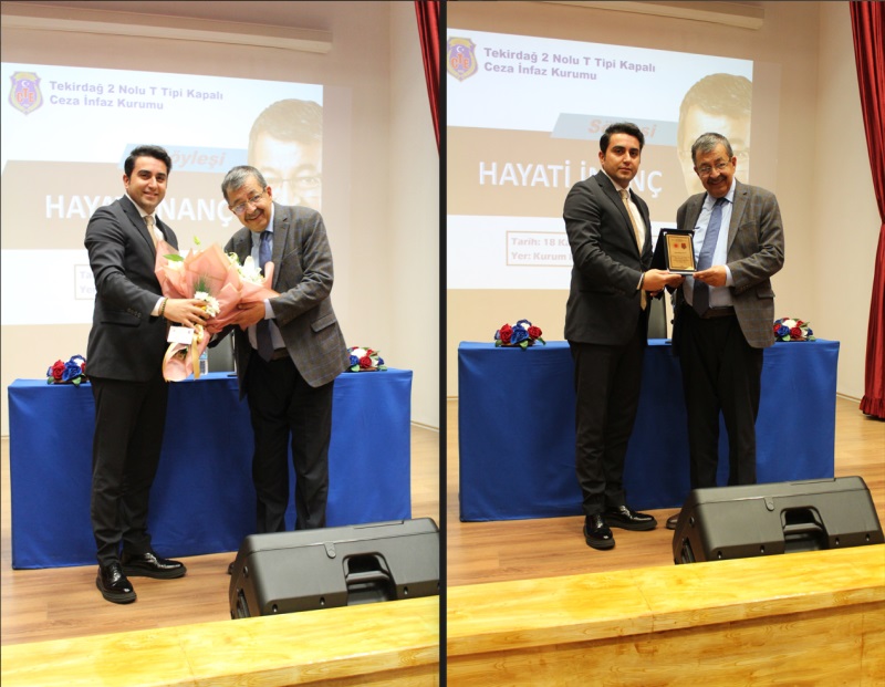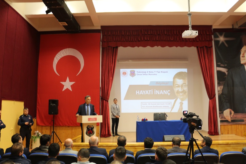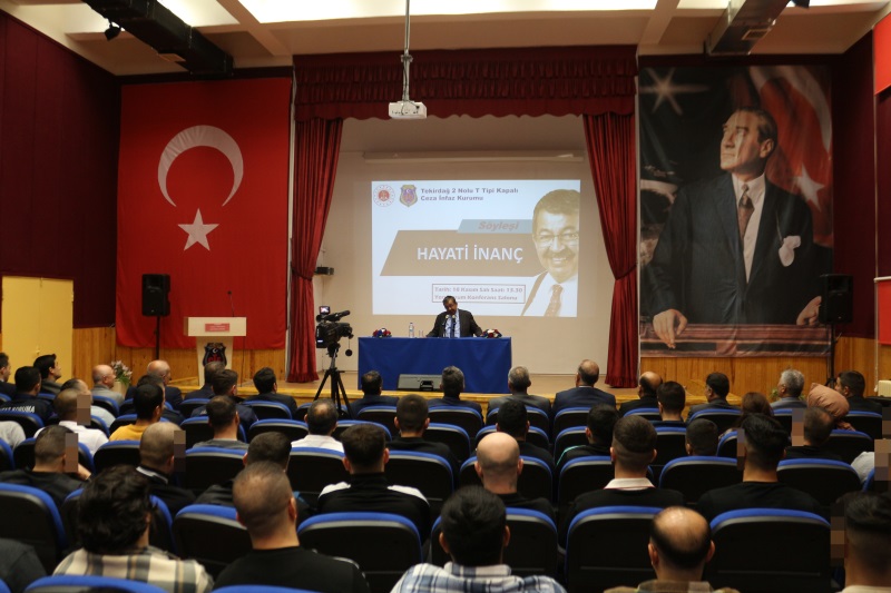 Yazar Sayın Hayati İNANÇ kurumumuzu ziyaret etti. Kurumumuz yemekhanesinde personelimiz ile öğle yemeğine katılan İnanç yemeğin ardından kurum konferans salonumuzda Cumhuriyet Başsavcı Vekilimiz Mustafa Deren ÖZKOL, Cumhuriyet Savcımız Hasan Can ÖZDİŞ, Kurum Müdürümüz Sadettin BİLGİN, kampüsümüzde yer alan diğer Kurum Müdürlerimiz, kurum personelimiz ve hükümlülerin katılımlarıyla söyleşi gerçekleştirdi. Söyleşinin ardından Cumhuriyet Başsavcı Vekilimiz Mustafa Deren ÖZKOL tarafından sayın Hayati İNANÇ’a çiçek ve plaket takdimi yapıldı. Fotoğraf çekiminin ardından program sona erdi.